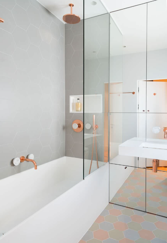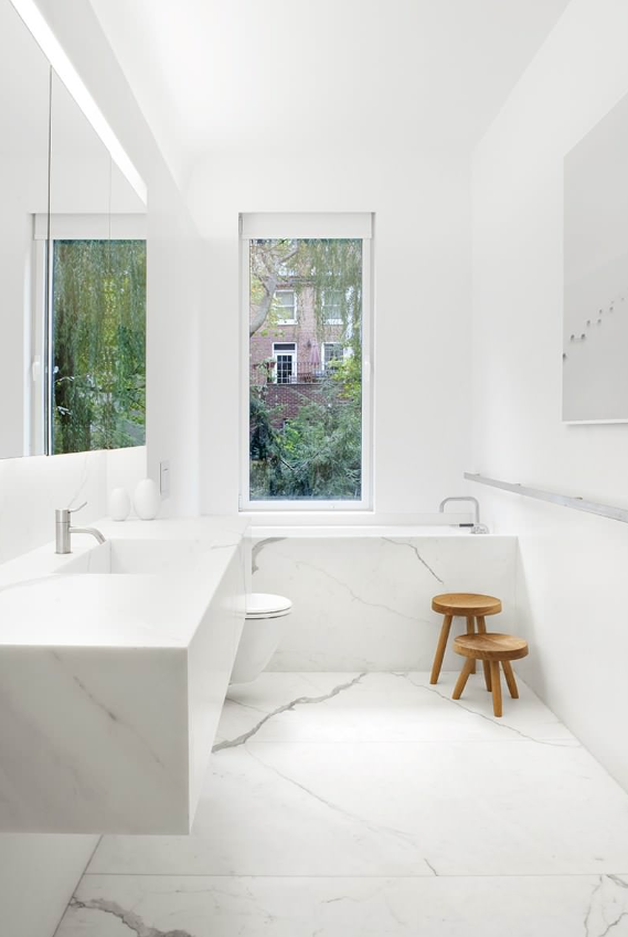 Minimalist bathrooms are characterized by their focus on functionality and simplicity. Clean lines, unadorned fixtures, and monochromatic color schemes create an atmosphere of sophistication and cleanliness. Open shelving or hidden storage keeps toiletries organized and out of sight. Large mirrors and well-placed lighting fixtures maximize the sense of space and brightness.