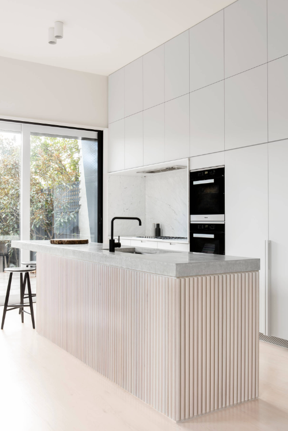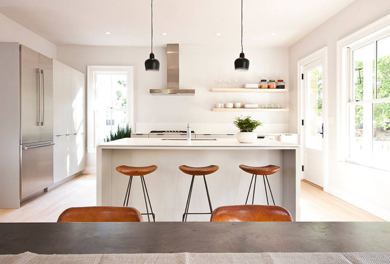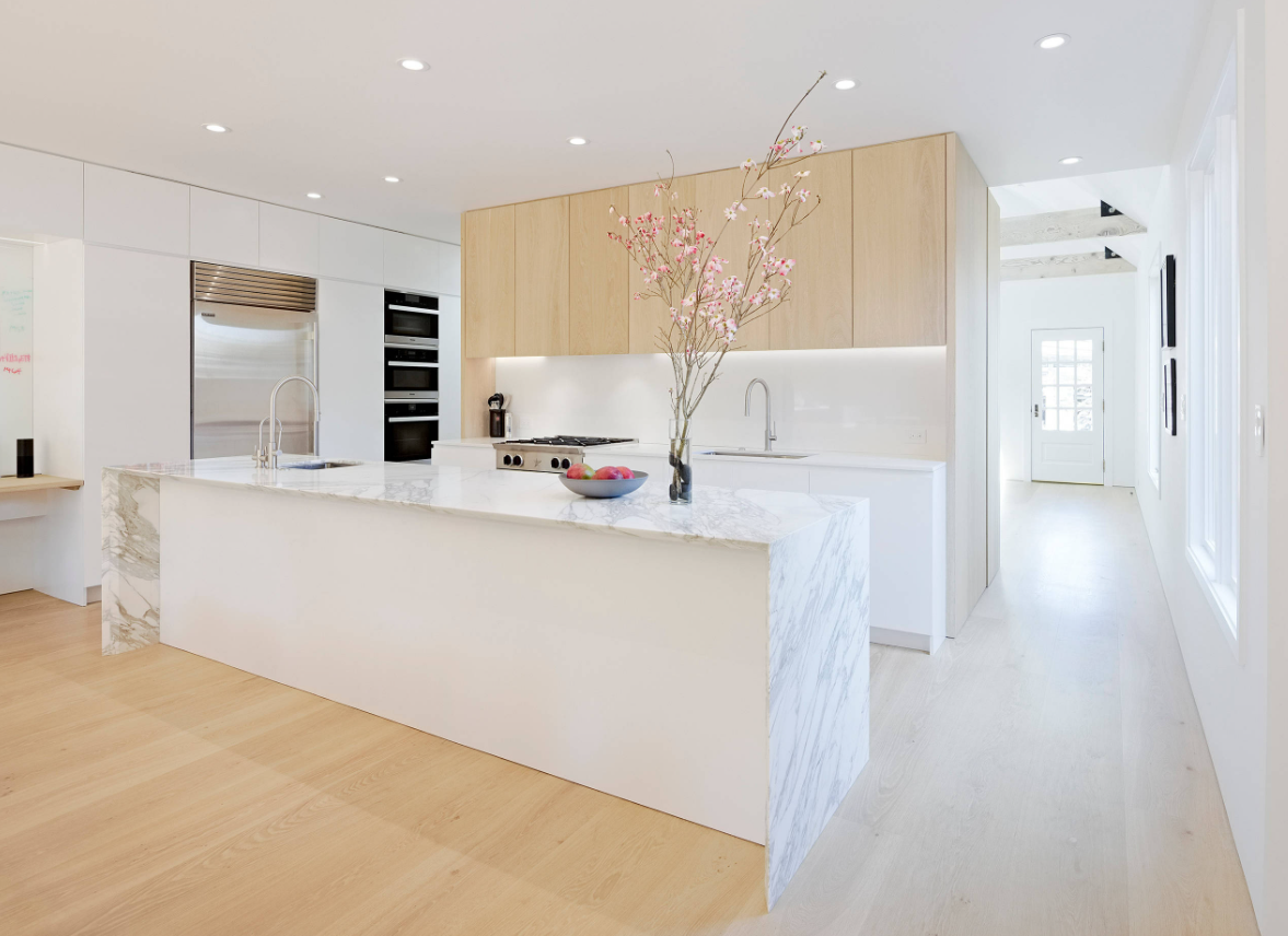 In minimalist kitchens, efficiency and elegance coexist seamlessly. Sleek cabinets with hidden handles, minimalistic countertops, and integrated appliances contribute to the uncluttered look. Neutral color palettes are often preferred, allowing the textures and materials to shine. Open shelving or glass-front cabinets display a curated selection of kitchenware and dishes. The emphasis is on functionality and clean aesthetics, allowing the space to serve its purpose without excess.
