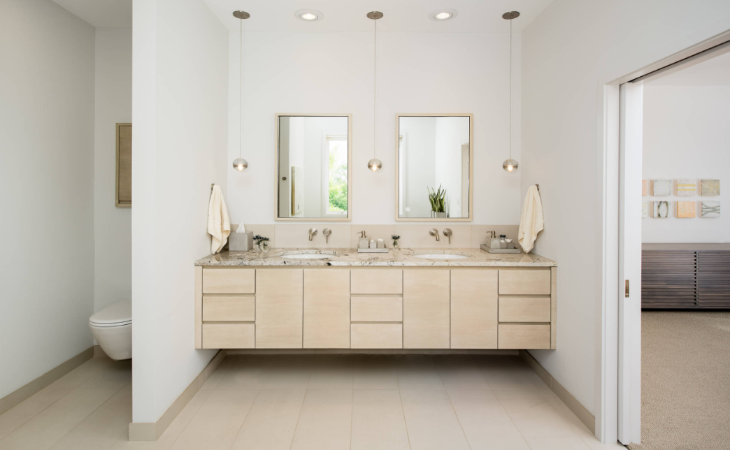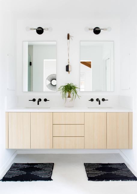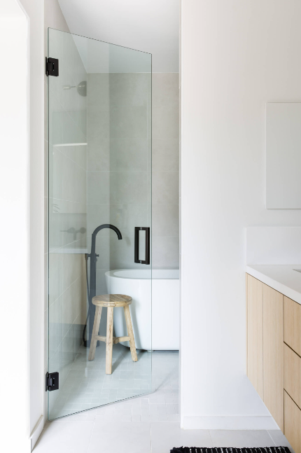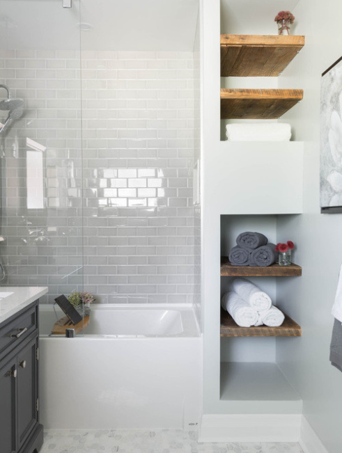 Scandinavian bathrooms embrace simplicity and practicality. Minimalist fixtures and clean lines create an uncluttered environment, while light-colored tiles and natural stone contribute to a sense of serenity. Floating vanities or wall-mounted storage solutions maintain the spacious feel of the room. Soft, indirect lighting enhances the ambiance, creating a spa-like retreat.